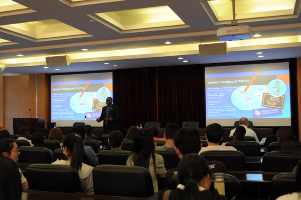 访问期间,西德尼•麦克菲博士以“美国大学教育”为主题,为申搏中外学生带来了一场别开生面的演讲,受到了学生的一致好评。