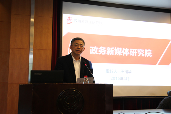 王建华对与会学者表示欢迎,向与会学者介绍了政务新媒体研究院办院理念、重点研究方向和工作开展情况。他指出,加强政务新媒体的研究和建设,是时代所需、学术之责。王建华说,政府和社会的需求出现在哪里,我们的研究院的工作就伸向哪里。他呼吁各位学者通过此次论坛,围绕不同专题,开展学术研讨,促进成果转化,为政务新媒体研究奉献宝贵智慧。