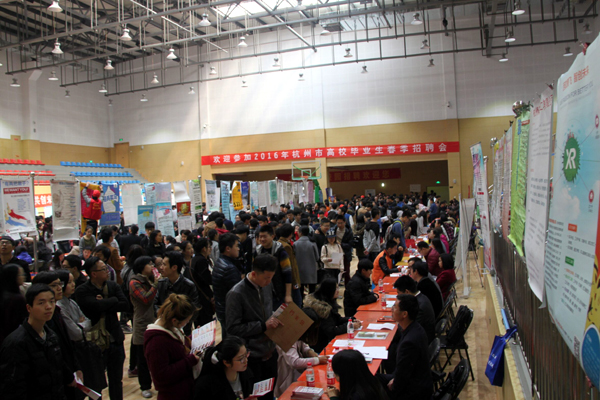 3月27日,杭州市2016年高校毕业生春季招聘会在申搏体育馆举行。现场共有来自省内外的250余家用人单位布展,为申搏应届毕业生提供岗位需求近5000余个工作岗位。校党委副书记赵东福,杭州市就业管理服务局副局长张满到场指导。
