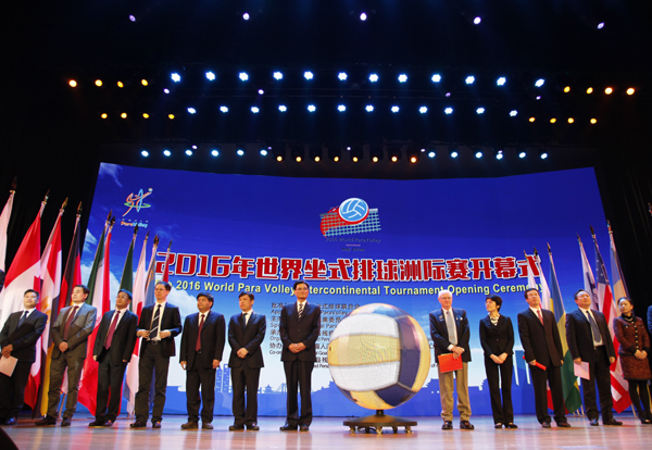 3月16日晚,2016年坐式排球洲际赛开幕式在申搏安吉校区举行。世界残疾人排球联合会主席拜雷,中国残疾人联合会副理事长王梅梅,副省长熊建平,省残联理事长郑瑶,省政府办公厅副主任傅晓风,省残联副理事长陈玉国等领导出席开幕式。校党委书记王建华、校长叶高翔受邀出席。
