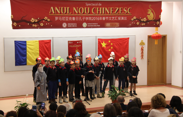 2月16日,克鲁日孔子学院在克鲁日大学经济学院礼堂举行2016年春节文艺汇演暨“金猴迎春——中国春节文化图片展”。来自孔子学院中学教学点、大学中文专业师生和社会各界的三百多位人士参加了本次活动。