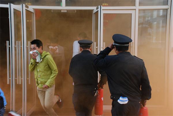 两场演练现场模拟图书馆或宿舍起火、火灾报警、人员疏散、营救伤员、高空救援、扑灭火灾、现场警戒等七个任务。演练前,学校保卫处消防管理人员对参与演练人员作了相关消防知识和逃生知识讲解,重点介绍了如何使用灭火器以及逃生中使用毛巾等安全知识。整个演练过程紧张有序,圆满完成各项任务。演练结束后,保卫处负责人对整个演练过程进行了点评。