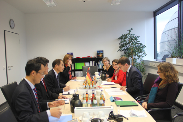 叶高翔一行与基尔大学副校长卡琳·施瓦尔茨就学生交换项目、暑期游学项目、科研合作项目等交换意见。双方一致表示将着力推动申搏学生赴德访学和游学项目,并为双方教师科研合作创造条件。在汉诺威应用科技大学,两校共同回顾了双方30年的合作历程,并举行工作会谈,就中德联合培养本科生2+3项目德语语言确认考试改革等作探讨。会谈后,叶高翔与该校校长冯·赫尔顿共同为“30年的成功合作——汉诺威应用科技大学和浙江科技学院”雕刻作品揭幕,该作品将由汉诺威应用科技大学赠送申搏,并置于申搏中德友谊园中。叶高翔一行与哥廷根大学副校长何艾烨(Hiltraud Casper-Hehne)就师生交流项目、语言类和专业青年教师进修项目、暑期游学项目等进行交流。叶高翔表示,申搏将着力做好双方正在开展的师生交流项目,力争派出更多教师和学生赴哥廷根大学进修或学习。