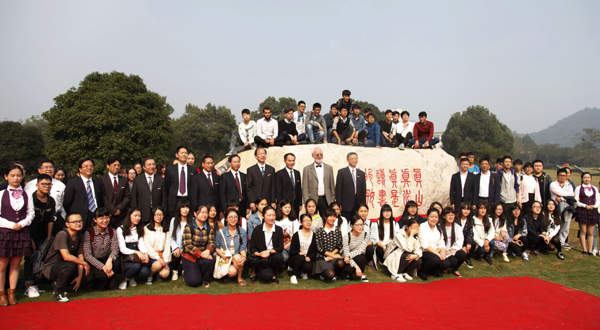 10月17日,校园文化景观石揭幕仪式在学校和山广场举行。校党委书记王建华、校长叶高翔共同为景观石揭幕。王建华随后致辞。校党政领导班子成员、相关职能部门和各二级学院负责人、校友代表、师生代表参加活动。