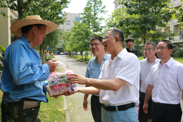 | 7月31日,校领导在职能部门负责人陪同下,分组走访慰问暑期坚守岗位的师生员工,向坚持工作学习的师生员工表示亲切的慰问,并送上防暑降温用品。 校领导王建华、叶高翔、周加敏、赵东福、郑友取、李泽泉等分两组来到小和山校区中和桥东侧上埠河蓄水坝工程施工现场、听松食堂及东和公寓改造工程现场、风雨操场工地、招生录取现场、学校门岗校园监控中心、食堂、实验大楼一楼等走访,与正在一线忙碌师生员工交谈。副校长冯军前往安吉校区慰问,走访了食堂、宿舍整修现场和工程实践中心等。 校领导指出,目前学校正处于为“大学梦”努力奋斗的关键时期,广大师生员工暑期工作学习“不松弦”,为大家扎实工作、追求卓越的精神点个“赞”。校领导说,暑期后勤和校园基本建设各项任务比较重,希望相关部门充分利用假期,保质保量完成工作,提升校园环境,为新学期师生工作学习提供良好条件。希望正在备战学科竞赛的同学脚踏实地,努力攻关,以优异的成绩为学校增光添彩。走访中,校领导特别叮嘱大家要注意防暑降温,劳逸结合。 新闻中心/文 学生记者 陈明诺 郑如娴 安吉校区后勤事务中心/摄 |