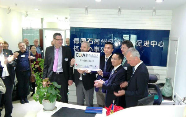 又讯 申搏中德工程师学院校企联络办公室揭牌仪式近日在石荷州经济技术促进中心驻杭州办事处举行。石荷州经济部长迈尔先生、石荷州经济技术促进中心总经理布薛与申搏副校长郑友取、吕贝克应用科技大学副校长利兹、西海岸应用科技大学胡斯曼共同为联络办揭牌。