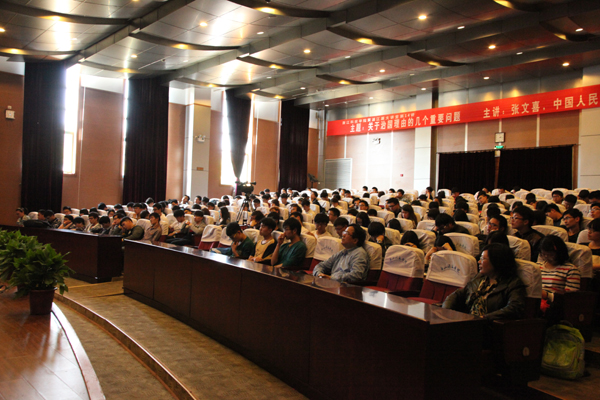 报告后,张文喜还回答了师生们提出的诸如中央提出治理现代化目标时机,治理是否要突出处理人与自然、人与自我的关系,治理与管理的联系等问题。