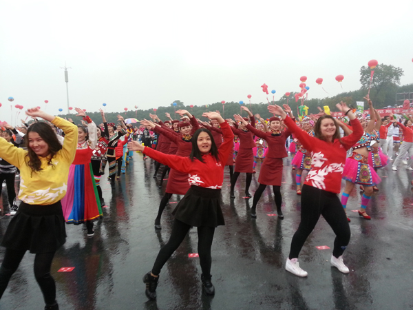图2为留学生在“万人同跳一支舞,共创排舞吉尼斯纪录”活动现场