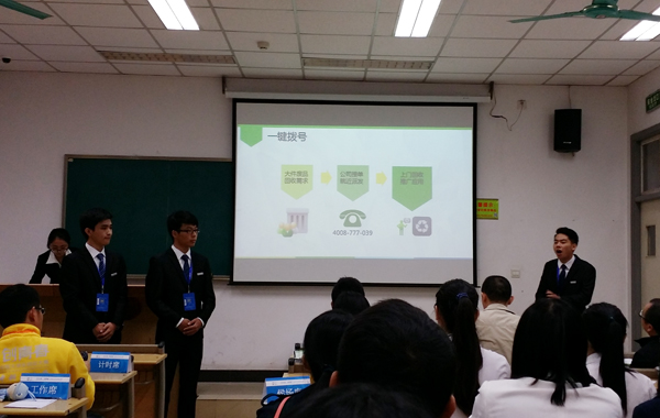申搏参赛项目“杭州执到宝环保科技有限公司”是一家利用智能手机软件应用平台,为城市居民提供垃圾分类回收服务,同时集废品回收、环保公益策划、APP广告推广及生活服务为一体的综合性环保公司。