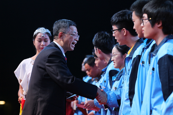 图2:校党委书记王建华为新生颁奖