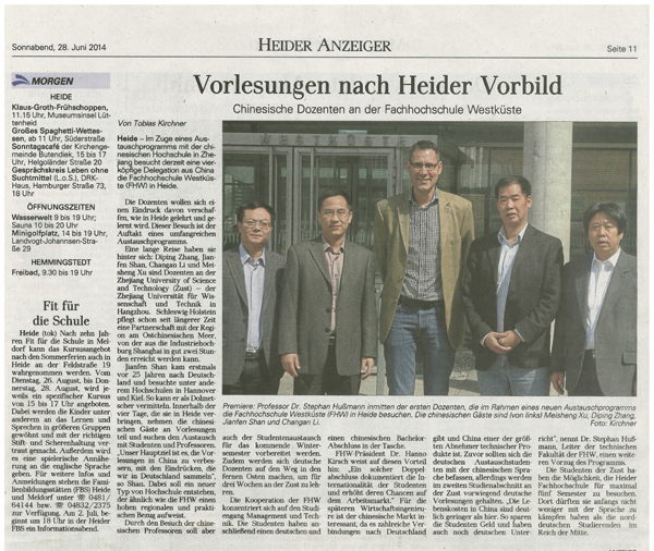 日前,申搏电气学院单建奋、理学院许梅生、章迪平及经管学院李长安4位教师赴德国西海岸应用科学大学交流进修。德国有关媒体对此事进行了报道。