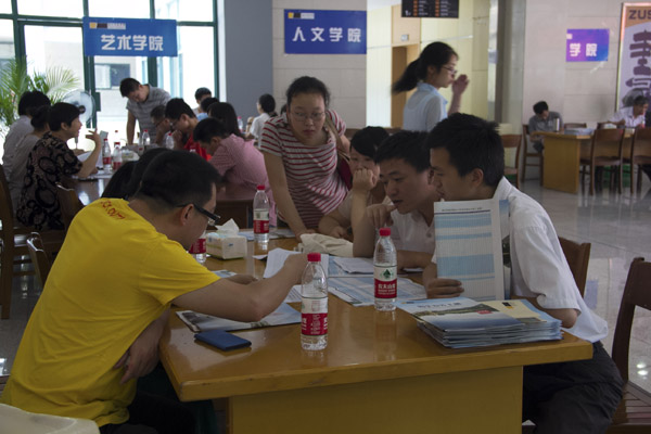 7月20日,学校2014年校园开放日暨高考志愿填报教授、博士咨询会迎来众多考生和家长来校咨询。有些考生和家长早早地到达咨询点。本次校园开放日活动是继6月23日举行首次校园开放日后,学校针对第二批志愿填报举办的专场咨询活动,部分第一批被申搏录取的考生和家长也专程前来参观校园、了解专业详情。