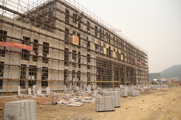 工程车辆来往穿梭,作业人员认真操作……安吉校区建设工地处处机声隆隆,建设热火朝天。目前,18幢主体建筑的粉刷、水电等室内装饰工程正在进行,建筑外墙石材、玻璃幕墙安装也在抓紧推进,室外管道等附属工程和景观、绿化等同步推进。办公生活家具、设备采购工作也全面展开。安吉校区建设正紧张有序推进。