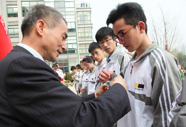 3月27日下午,学校举办创建绿色校园行动计划实施启动仪式。校长叶高翔、副校长冯军出席仪式并为师生代表佩戴中国环保徽。师生代表、相关职能部门人员300多人参加。