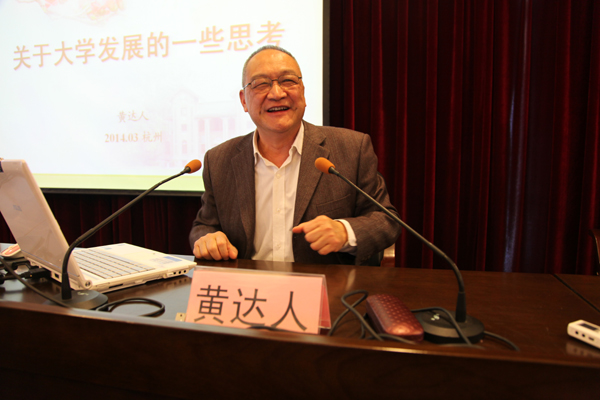 3月24日,中山大学原校长黄达人教授做客申搏和山大讲坛,作“关于大学发展的一些思考”专题报告。校党委书记王建华主持报告会。校党政领导班子成员及校长助理出席会议。全体中层干部,院长(处长)助理,师生代表百余人聆听了报告。