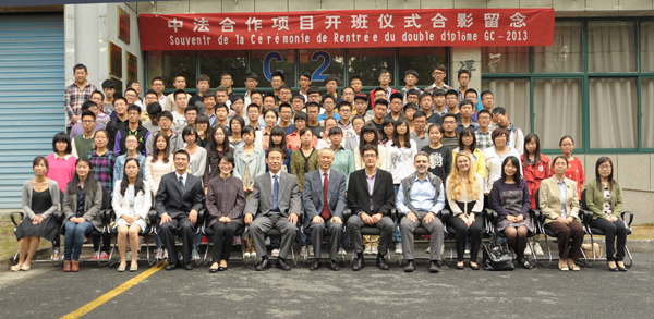 10月15日上午,土木工程(中法班)2013级新生开班仪式举行。副校长吕进出席仪式并致辞。法方合作高校赛尔齐•蓬多瓦兹大学项目负责人Bruno Fioro教授等为新生作始业教育。国际处、建工学院负责人、申搏法语教师及中法班全体同学参加。