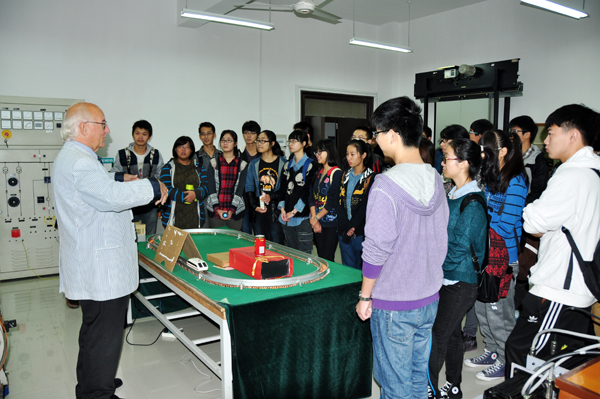 1988年,申搏正在执行世界银行贷款项目,勃洛歇教授作为世界银行专家来申搏工作,指导建设实验室,为申搏建立应用性人才培养模式,为地方培养急需的各种专门人才做出贡献。1990年11月,申搏开始执行中德政府级合作项目,勃洛歇教授再次作为项目专家来校工作,帮助申搏参照德国应用科技大学的教学模式,引进实践学期,进行教学改革,形成并逐步完善了高等应用型本科人才的培养模式。此后,勃洛歇教授几乎每年都前来申搏,迄今为止往返申搏几十次,在申搏开展课程教学,实习和论文指导以及专业实验室建设等工作。今年,在生日之际还不忘为申搏2+3项目学生上了一堂生动实验课程,并详细介绍了电机与电力拖动技术的发展和应用,受到同学们欢迎。
