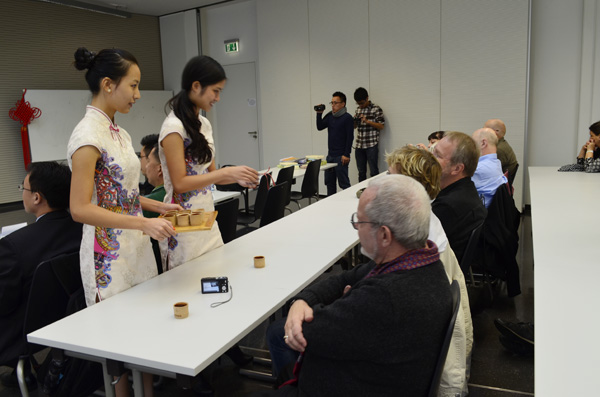 次日,交流团受邀访问了埃尔福特应用科学大学,作了主题为“中国文化与浙江科技学院介绍”的报告,并再次奉上了精彩节目。图灵根州东亚武术协会专程组队前来观摩学习交流,观众向交流团成员请教武术、民乐、茶艺,两国学生和普通民众在文化交流中结下更深的友谊。