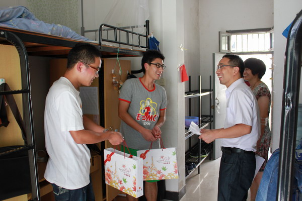 9月16日中午,副校长郑友取在研究生处负责人陪同下,来到东和公寓6号楼,看望了在校的20多位研究生,代表学校给每位研究生送上了中秋祝福。