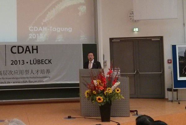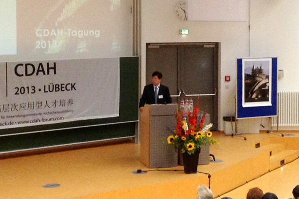 9月11日至13日,“中德论坛:高层次应用型人才培养(CDAH)”第四届论坛大会在德国吕贝克应用科学大学举行。中国驻汉堡领事馆总领事杨惠群、中国教育部国际合作与交流司正司级巡视员刘宝利及发展规划司副司长郭春鸣等出席会议。德方14所大学及教育机构、中方16所高校共150余名代表参加。申搏党委书记王建华率相关二级学院、教务处、发展规划处、德国埃尔福特孔子学院负责人及国际处共9人参加论坛。