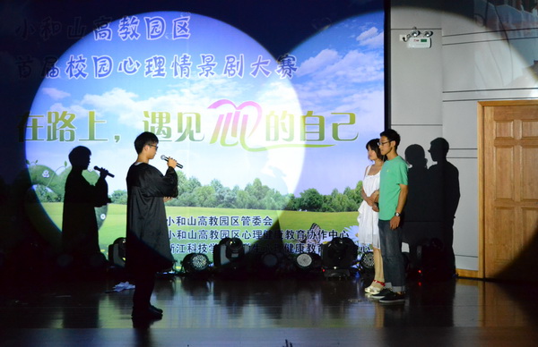 情感的困惑、学习的迷茫、生活的挫折,是现今大学生甚为关注的问题;相约心灵、相约梦想、相约心的自己,则是解决问题的关键。5月31日晚,以“在路上,遇见‘心’的自己”为主题的小和山高教园区首届校园心理情景剧大赛在申搏举行。节目富含的教育意义和鲜活的表现手法吸引了园区内浙江工业大学、浙江外国语学院、浙江长征职业技术学院、浙江特殊教育职业学院和申搏等300多位同学前来观看。