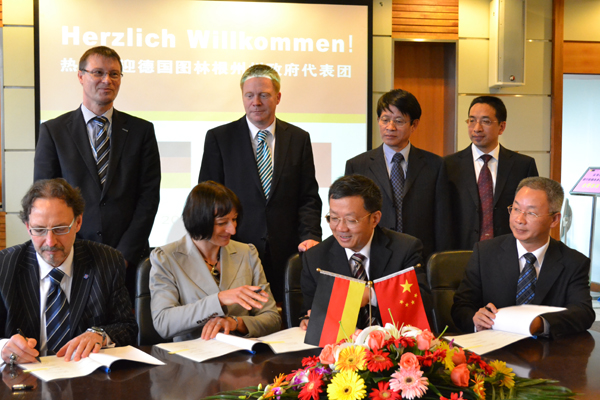 会谈期间,杜卫向来宾介绍了申搏的办学及国际合作情况,特别是和埃尔富特应用科技大学的合作。马奇对申搏与埃尔富特应用科技大学的合作以及埃尔富特孔子学院的工作给予高度的评价,表示将继续支持申搏与图林根州高校的合作。随后,申搏与埃尔富特应用科技大学就共同建立“材料流与物流”硕士联合培养专业签署合作意向书。