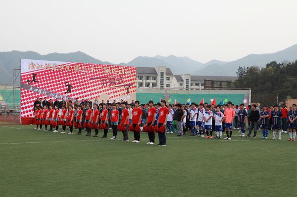 赵东福为本次运动会首项比赛学生足球赛开球。