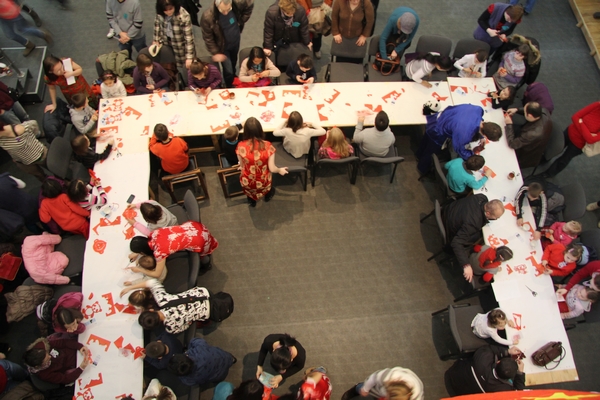 故事表演之前,孔子学院邀请孩子们动手剪出猴子等《西游记》中的角色。孩子们欣喜地收藏了自己的剪纸作品。为了让孩子们保持对中国文化的兴趣,孔子学院还向他们发放中罗双语版的中国成语故事卡片及精美书签。