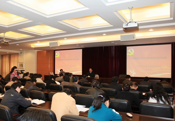 开班仪式后,全省高校党的十八大精神集中轮训讲师团成员浙江理工大学周光迅教授作了题为“中国特色社会主义道路的开创与拓展”的报告。杭州师范大学曹力铁教授作了题为“以改革创新精神全面推进党的建设新的伟大工程,全面提高高校党的建设科学化水平”的报告。
