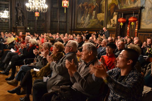 当地时间2月9日,德国埃尔福特应用科学大学孔子学院首次在埃尔福特市的最高音乐殿堂——市政音乐大厅举办迎蛇年新春音乐会。来自埃尔福特及周边城市的一百五十多位音乐爱好者齐聚一堂,共同欣赏了由魏玛弗兰兹•李斯特音乐大学四位未来音乐家献上的这台中西合璧的音乐盛会。
