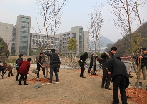 2月25日,学校开学第一天,校党政班子成员及校长助理、全体中层干部挥汗播绿,在校内开展迎春植树活动。