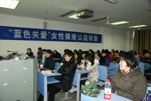 “蓝色关爱项目”由中国人口宣传教育中心创立于2009年,至今已举办3年,该项目在北京、上海、杭州、南京、成都、深圳、武汉、大连、广州、佛山等城市,邀请专家走进知名大学和街道(社区)开展女性健康教育公益讲座、发放健康科普手册等多种渠道,为女性普及健康避孕理念和知识,提高女性健康意识。