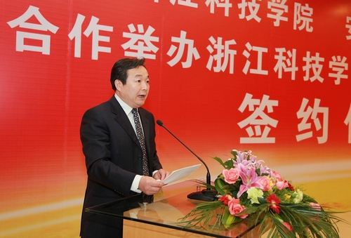 安吉县委书记单锦炎在致辞中说,浙江科技学院与安吉联姻,共同举办中德工程师学院,是安吉融入杭州都市圈战略结出的又一丰硕果实,不仅圆了安吉人多年的高校梦,更是为今后安吉经济社会科学发展提供了强大的人才智力支撑。单锦炎表示,安吉县将整合各类资源,紧密联动配合,高效规范运作,精心组织、科学管理、狠抓质量,不负众望,与学校一起,为推进中德工程师学院的早日建成运营,促进县校双方的互惠共赢,作出自己应有的贡献。
