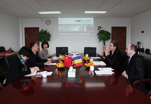 12月20日,罗马尼亚克鲁日巴比什-波雅依大学校长约安•鲍伯 (Ioan Aurel POP)、副校长约安•博洛万(Ioan BOLOVAN)在孔子学院中方院长冯少中陪同下来申搏访问。校长杜卫代表学校热烈欢迎罗马尼亚来访客人,并与之进行友好会谈。