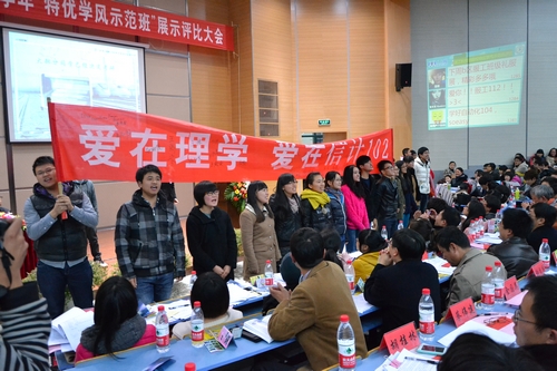 展示评比会上,20个班级依次登台,围绕班级管理、政治思想、组织纪律、班风建设、社会实践、寝室情况、文体活动、班级特色等几个方面,展示了过去一年里的班级建设成果。精心准备的PPT和激情演讲,台上与场下的热烈互动,将活动不断推向高潮。经管学院财务管理103班还作为2010-2011学年特优学风示范班代表做了汇报展示。经过近3个小时的激烈角逐,土木工程102班等10个班级最终被评为2011-2012学年校特优学风示范班。