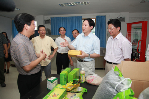 徐辉一行实地参观了校实验中心大楼、GE实验室、农产品化学和生物加工技术省重点实验室等。