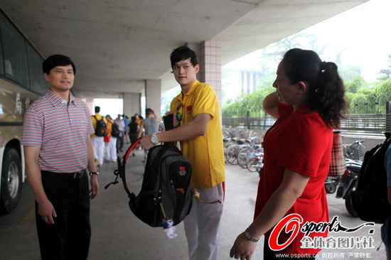 图2:国家游泳队出征前,孙全洪夫妇为孙杨鼓劲