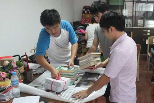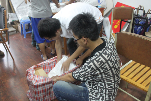 图为宁蒗爱心毅行小分队队员正在打包拟携带的物资
