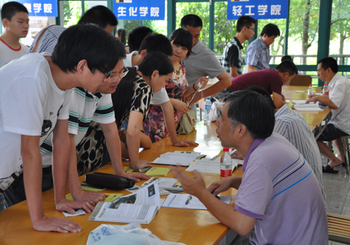 7月20日一早,学校2012年校园开放日暨高考志愿填报教授、博士咨询会就吸引了众多考生和家长,其中许多考生和家长是从外地赶来的,甚至还有广东的考生和家长前来咨询。这也是6月23日学校举行今年首次校园开放日后,又一次举办此项活动。