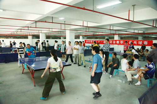又讯 6月5日,校第三十一届运动会教职工乒乓球团体赛落下帷幕。来自15个分工会的140余名运动员参加比赛。机关队夺得团体第一名,校长杜卫、党委副书记陈根芳、纪委书记鲁凤等代表机关队参赛。图书馆队获第二名,理学院队获第三名,建工、电气、后勤公司、信息、语言代表队分别获得第四至八名。
