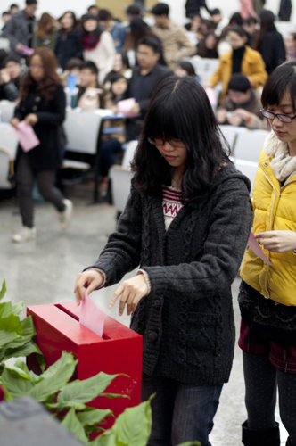 3月15日晚,经管学院党总支举行换届直选大会,会议按照规定议程,通过正式党员以无记名投票直接选举的方式产生了新一届经管学院党总支领导班子和书记、副书记。经管学院党总支是本次学校党总支、直支换届直接选举工作首家完成的党总支。经管学院385位师生党员参加会议,其中有选举资格的187位正式党员参加选举投下了自己神圣的一票。校党委委员、组织部长李明也出席本次会议。