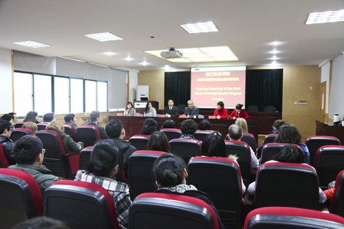 2月24日,首届外国留学生硕士班开班典礼在经管学院举行。副校长吕进出席并致辞。经管学院、国际教育交流中心相关部门负责人、经管学院全英文授课的部分教师以及国际班的学生代表参加了典礼。