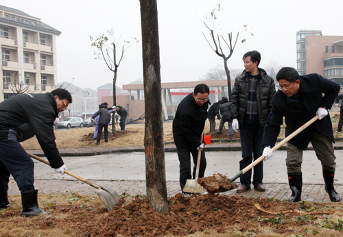 2月11日是新学期上班第一天,党委书记王建华、校长杜卫等校领导带领全体中层干部,主任(院长)助理等在校内植树,为校园添绿打响了春季植树第一炮。