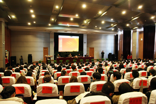 12月30日下午, 2010-2011学年先进集体暨优秀学生表彰大会举行。校党委副书记陈根芳、副校长赵东福出席会议并为先进集体及优秀学生代表颁奖。相关部门和二级学院负责人、学生代表200余人参加会议。