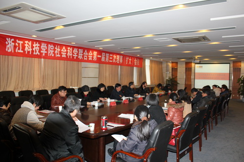 1月6日,校社科联召开第一届第三次理事会(扩大)会议。省社科联党组成员、秘书长周鹤鸣,申搏党委副书记周加敏出席会议并讲话。校社科联主席胡浙平主持会议,并作校社科联2011年度工作报告。校社科联理事会成员及部分教师代表参加了会议。