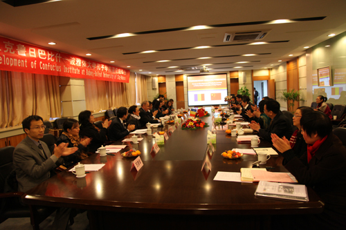 克鲁日孔子学院中方院长在会上介绍了孔子学院的建设经验。