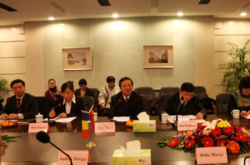 12月15日,申搏与罗马尼亚克鲁日巴比什-波雅依大学举行孔子学院建设座谈会。申搏校长杜卫、副校长赵东福,罗马尼亚克鲁日巴比什-波雅依大学校长安德烈•玛格、该校语言中心主任迪莉娅•玛格出席座谈会,省教育厅外事处和申搏相关职能部门负责人,克鲁日孔子学院中方院长、埃尔福特孔子学院中方院长及部分教师和留学生代表参加座谈。会议由赵东福主持。
