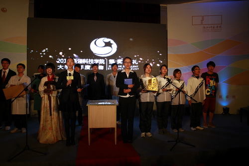 12月16日晚,“卓越青春”2011大学生年度人物颁奖典礼隆重举行。校党委书记王建华,团省委常委、宣传部长杜作锋出席晚会并为获奖学生颁奖,校党委副书记陈根芳致辞。相关部门负责人及各二级学院分管学生工作负责人、分团委书记、学生代表300余人参加颁奖典礼。