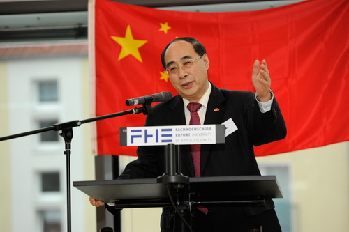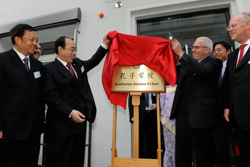 近年来,中德两国政治、经贸关系发展良好。中德两国有640对友省友城关系,有500多所大学建立了校际交流关系。埃尔福特市是德国图林根州的首府,新成立的孔子学院是德国中部地区的第一所,也是德国建立的第12所孔子学院,仅有20万人口的埃尔福特市与中国的关系十分密切。