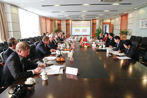 代表团与学校领导、各相关二级学院和部门就合作举办中外合作办学机构进行会谈,并参观了校园和部分实验室。申搏党委书记王建华宴请了德方来宾,校长杜卫和副校长吕进、赵东福、郑友取参加会谈。